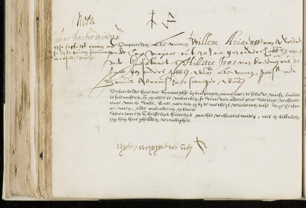 De transcriptie van de ondertrouwakte van Willem Adriaensz en Hilletje Jans luidt: