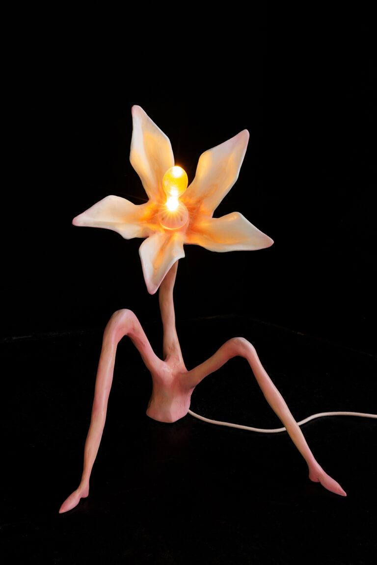 Het resultaat is een collectie snoepkleurige vrouwelijke figuren die traditionele houdingen op de proef stellen. In plaats van netjes en beleefd met de benen bij elkaar te zitten, dringt de kleine lamp zich onbeschaamd naar voren, met de benen wijd uit elkaar, en herclaimt een houding die vaak als ongepast wordt beschouwd.