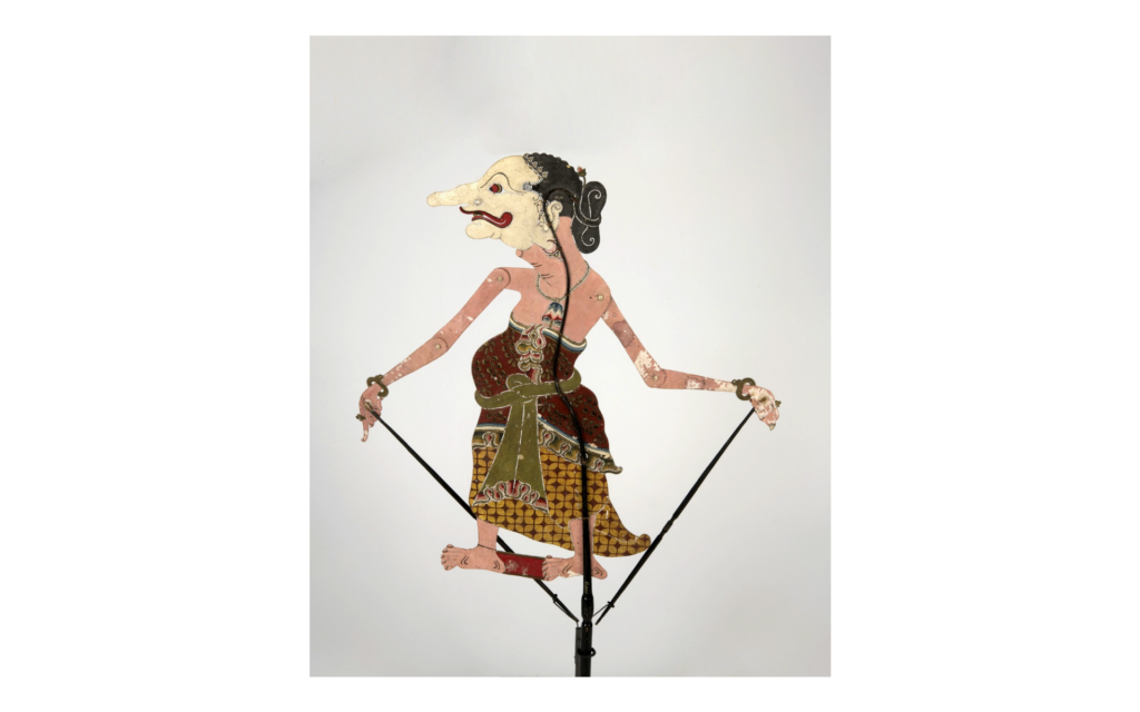 Wajang kulit is een Javaans schaduwspel met tweedimensionale leren poppen. Sinds 2003 staat deze kunstvorm op de UNESCO-lijst van immaterieel cultureel erfgoed van de mensheid. Deze wajangpop, die het personage Petruk voorstelt in vrouwenkleding, is een zeldzame versie die afkomstig is uit Surakarta, Midden-Java. De pop stamt uit de periode 1900-1950 en is een schenking uit de collectie van het voormalig museum Nusantara.
