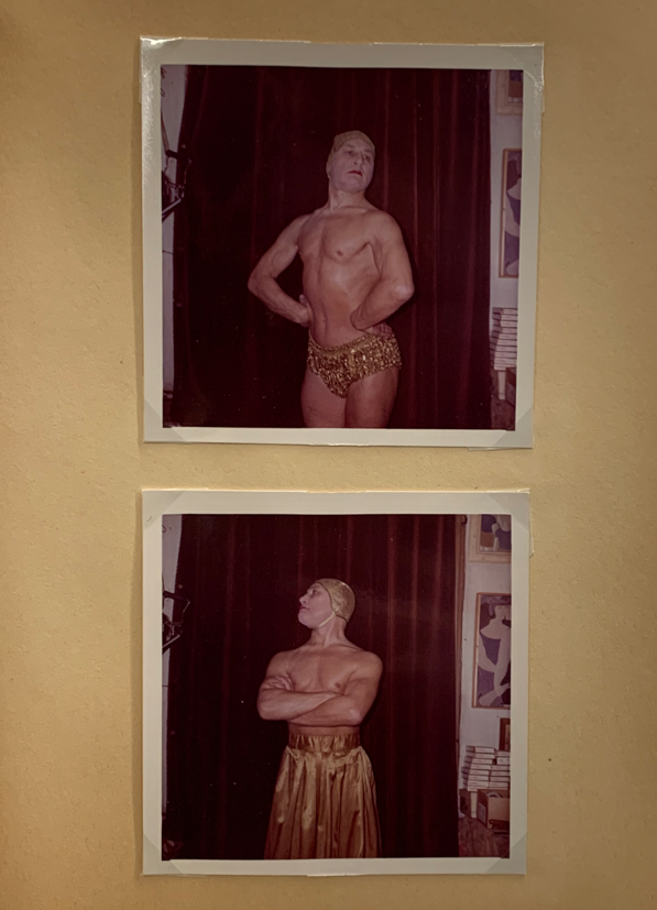 Opgegroeid in een familie van toneelspelers, werkte Erfmann in zijn jonge jaren als parterre-acrobaat.8 Dit verklaart de rol van acrobatiek in zowel zijn geschilderde voorstellingen als in de kostuumtekeningen en portretfoto’s van zijn dragpersona’s.