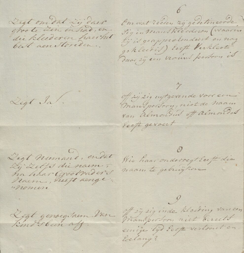 Uiteraard kon Neeltje fluiten naar haar geld, het drietal vertrok zonder dat er een schat verscheen. Wat Neeltje niet wist, was dat de zoon in het gezelschap een jonge vrouw was, die haar hele leven al in mannenkleren liep. Haar naam was Marijtje van Hove, ook wel bekend als Alemondus of Almonde Sjouwels. Marijtje was in 1746 of 1747 in Duitsland geboren, en na de dood van haar vader met haar moeder naar Nederland getrokken. Toen Marijtje een jaar of vier jaar was, overleed ook haar moeder. Dat gebeurde in Alkmaar, waar ze alleen met haar broer achterbleef. Haar broer gaf haar jongenskleren, en vanaf dat moment bleef zij als man gekleed door het leven gaan. Naar ze zelf zei omdat zij daar ‘groote zin in had, en die kleederen haer het beste aanstonden’. Ze overleefden door te bedelen en te stelen.